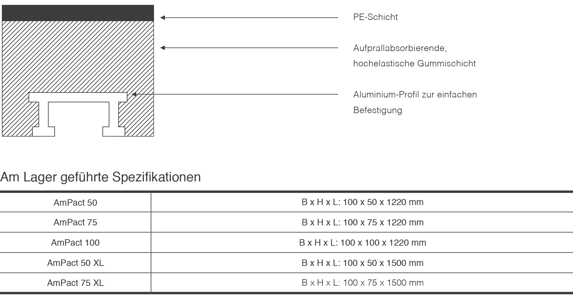 Ambelt® Dämpfungselemente sind hochwertig verarbeitet, bestehen aus einer energieeffizienten gleitfreudigen PE-Schicht, einem aufprallabsorbierenden Gummikern sowie einem Aluminiumprofil zur einfachen Befestigung.