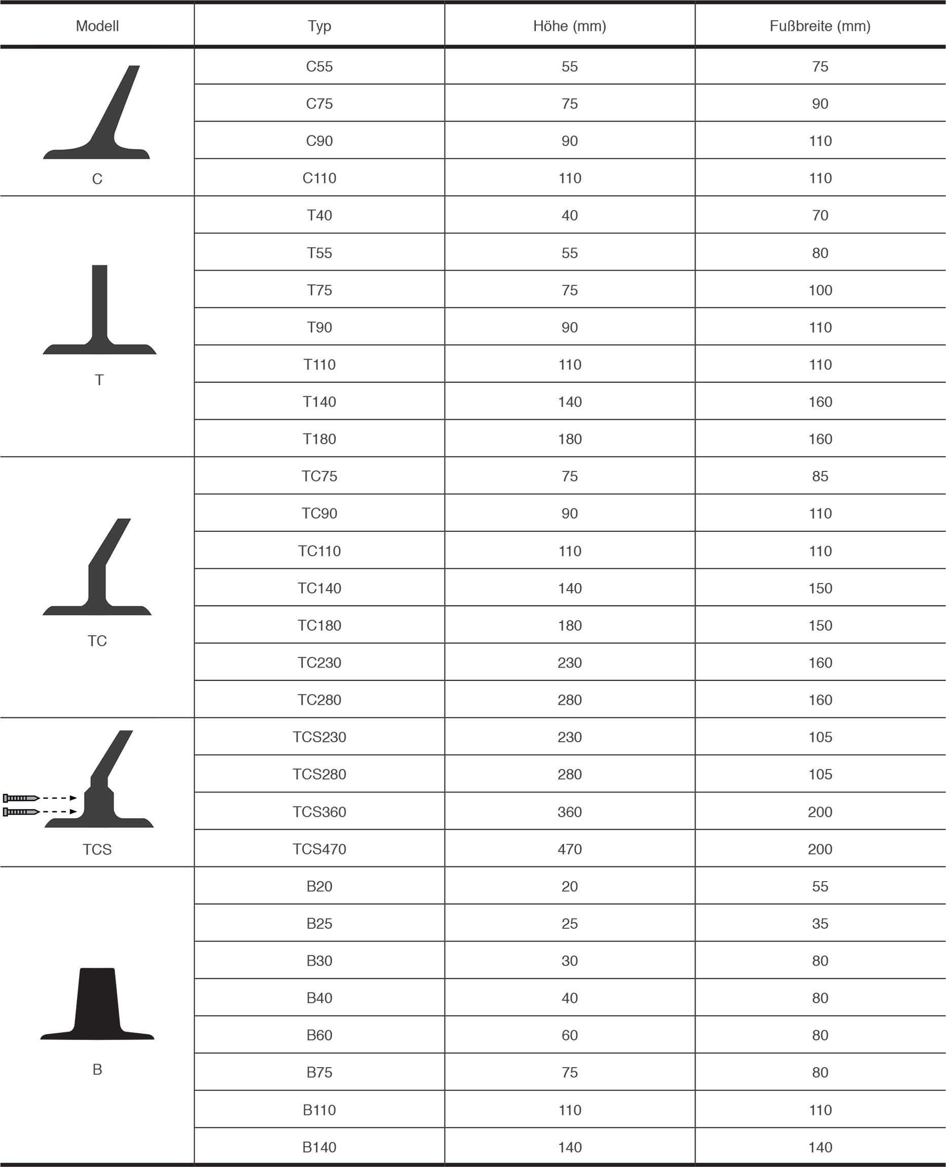 Ambelt® bietet verschiedene Stollen-Modelle (C, T, TC, TCS, B) für vielschichtige Einsatzmöglichkeiten an. Die Höhen der Stollen variiert dabei zwischen 20 mm und 470 mm, und können somit an das gewünschte Einsatzgebiet angepasst werden.