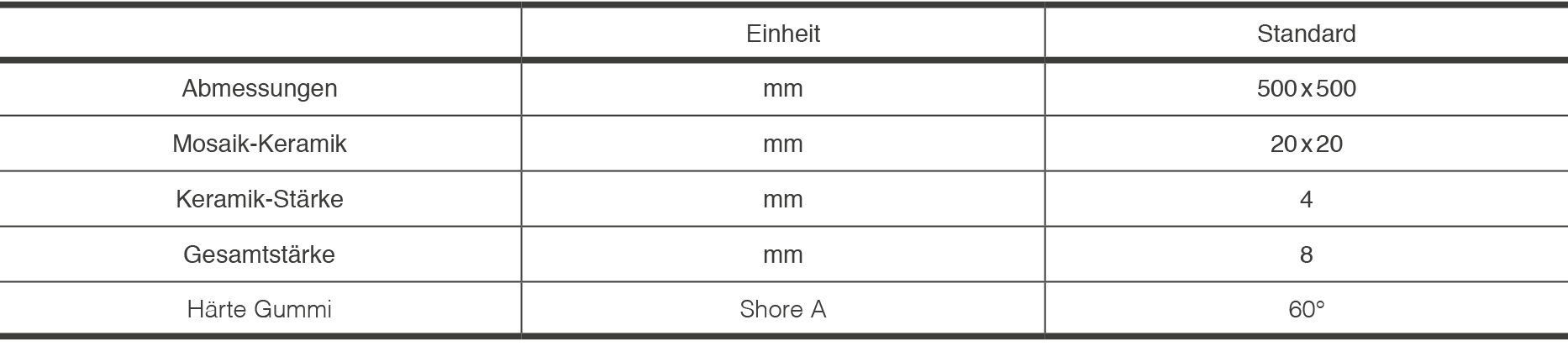 Ambelt® Keramikverschleißschutzmatten sind in den Abmessungen 500x500x8 (4+4)mm Lagerware. Je nach Kundenwunsch können selbstverständlich auch andere Gummi- und Keramikstärken hergestellt werden.